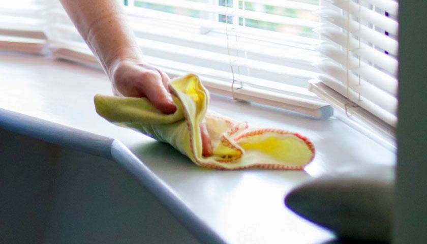- Промокните этим составом тряпку и обработайте разводы на подоконнике.