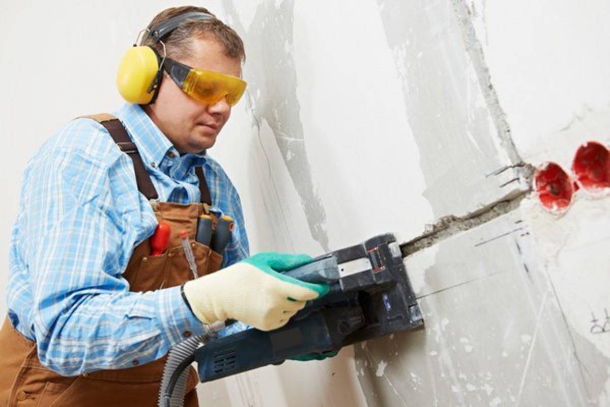 - Выполняют штробление стен под новую проводку и сантехнические трубы.