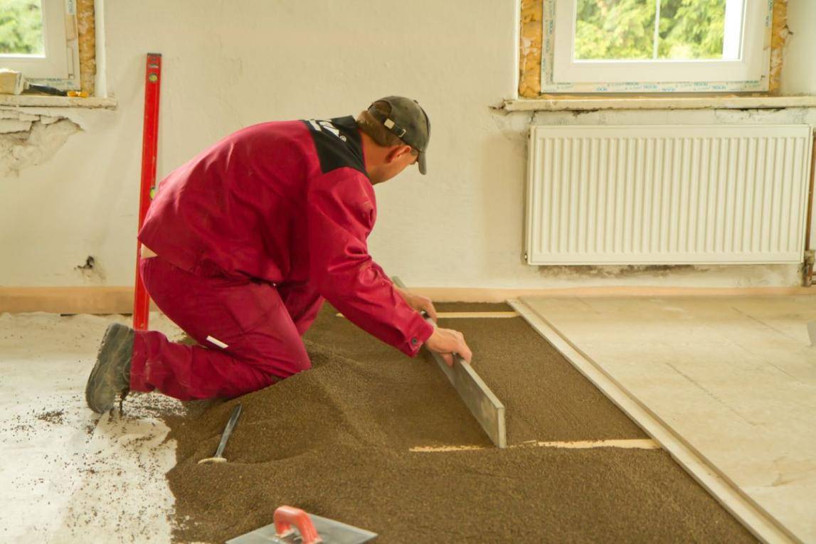 - Если в проекте предусмотрены работы по шумо- и теплоизоляции, то они ведутся одновременно со стяжкой пола.
