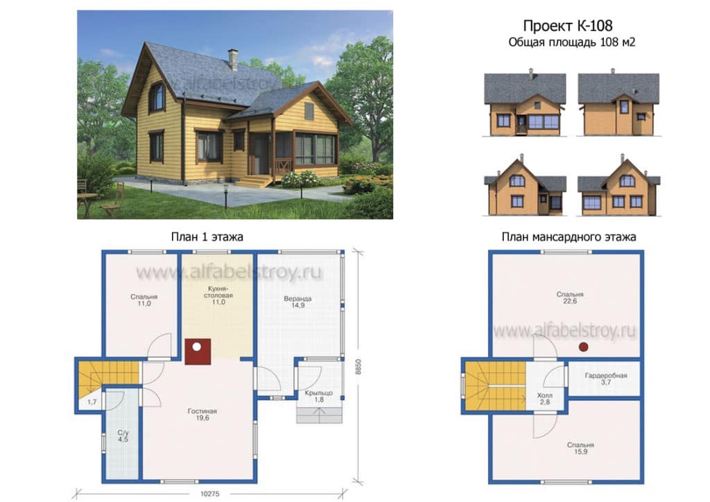 Наличие цокольного этажа и мансарды увеличивает базовую цену строительства на 20-60 %;