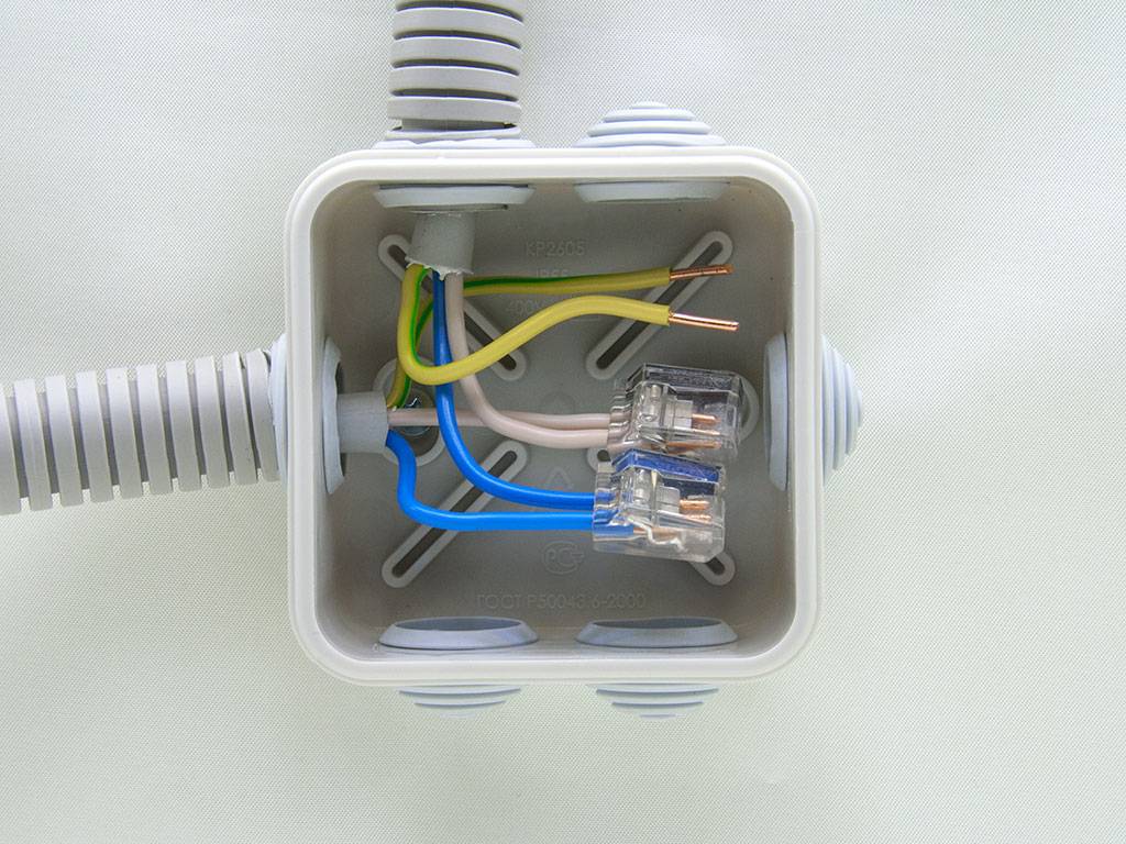 - Перед тем как соединять провода в распаечной коробке следует убедиться, что они не имеют натяжения. Либо что это натяжение не возникнет при температурных перепадах.