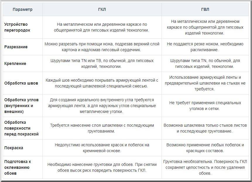 Знание технических параметров плит облегчает решение вопроса, что лучше, ГКЛ или ГВЛ в той либо иной ситуации. Также это позволяет более рационально использовать листы в проведении монтажных работ.
