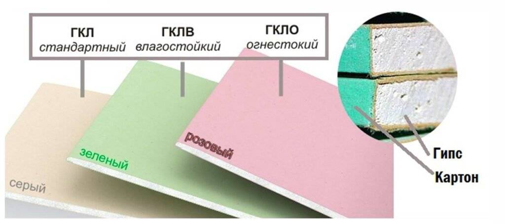 - влагостойкие листы, обработанные специальными компонентами, картон на таком листе зеленого цвета, что позволяет отличить ГКЛВ от ГКЛ;