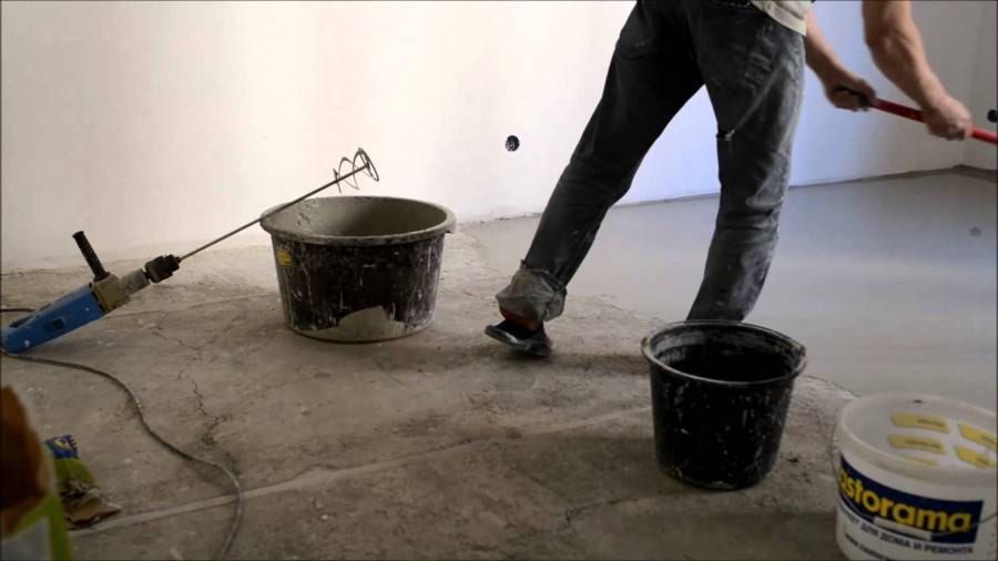 - Процесс приготовления раствора должен быть постоянным, ровнитель сразу выливают на свободный участок пола.