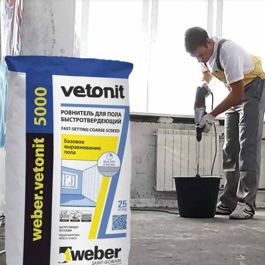 - «Ветонит». Имеет в составе особые присадки, которые позволяют смеси быстрее растекаться по основанию и сохнуть без образования трещин. Производитель предлагает несколько видов материала. Так, например, «Ветонит плюс» выбирают профессиональные строители за максимально быстрое застывание, они отмечают исключительное удобство в эксплуатации. Уже через 24 часа после нанесения слой окончательно высыхает, и можно приступать к дальнейшему обустройству пола. Самовыравнивающиеся смеси для пола Ветонит нельзя использовать в качестве финишного покрытия, их не получится отшлифовать или покрасить.
