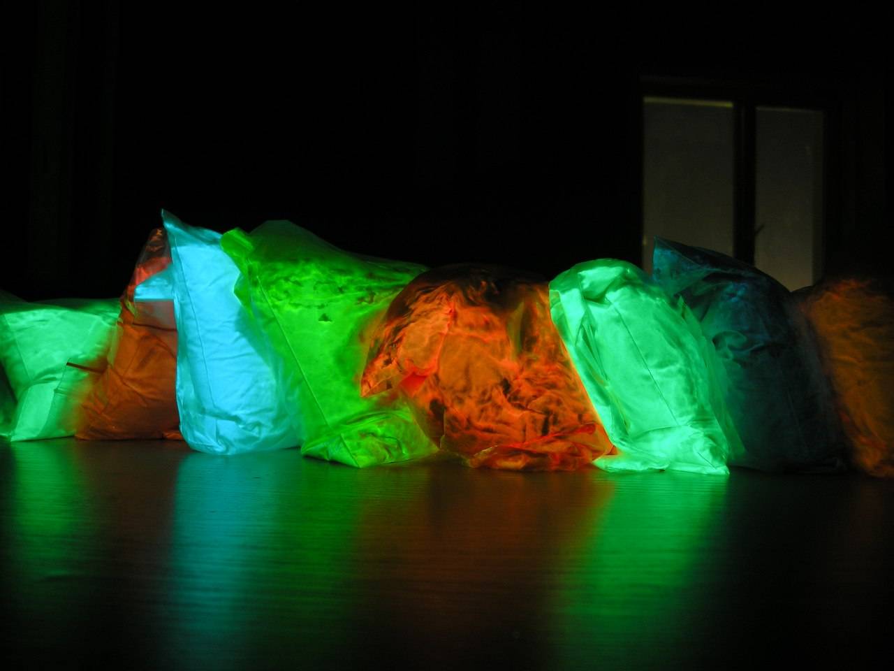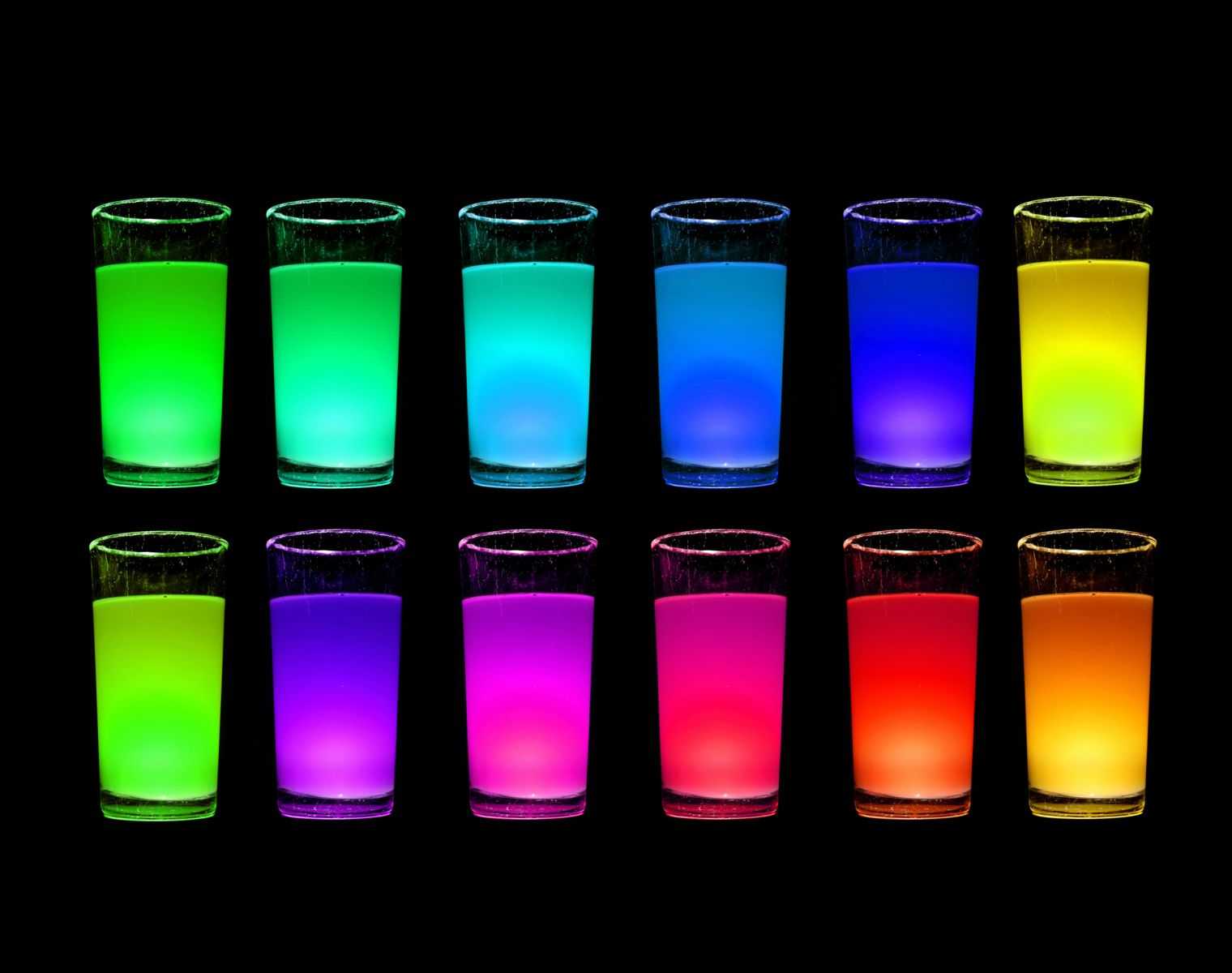 Самыми эффектными считаются зеленая, желтая, розовая и красная ультрафиолетовые краски, так как они хорошо проявляются при слабом ультрафиолетовом источнике.