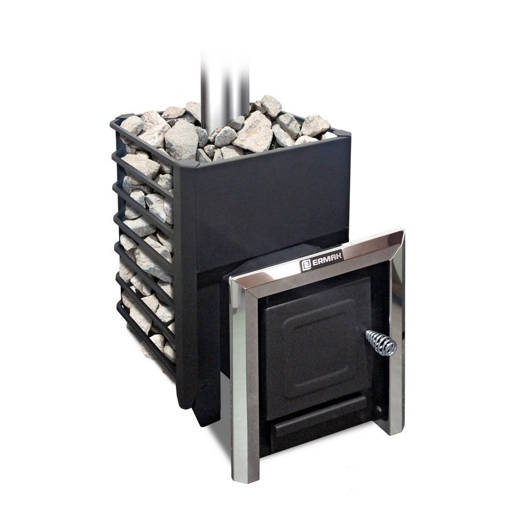 «Ермак 12». К достоинствам этой дровяной печи относятся сравнительно небольшие размеры и удобство использования. Если понадобится, можно снять с конструкции сетку для камней и повесить на свободное место резервуар с водой.
