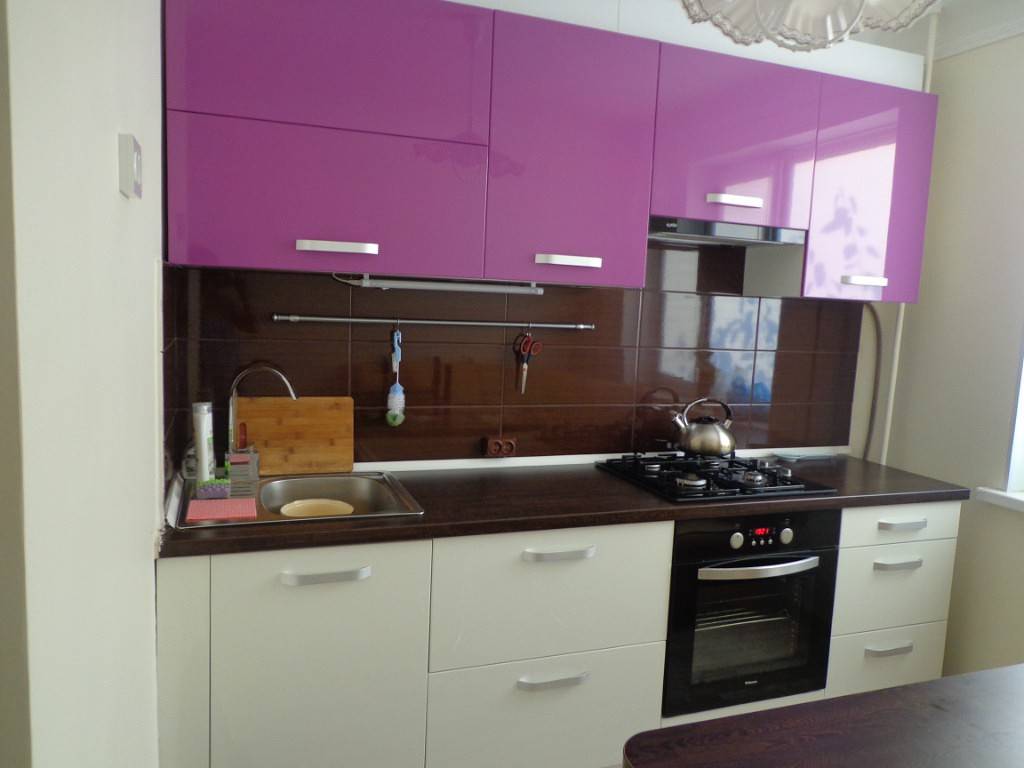Неплохо смотрятся комнаты, оформленные в коричневом цвете с ярким пурпурным гарнитуром. Если последний сделать матовым, с приглушенными тонами, то интерьер вполне подойдет для кухни в классическом стиле.