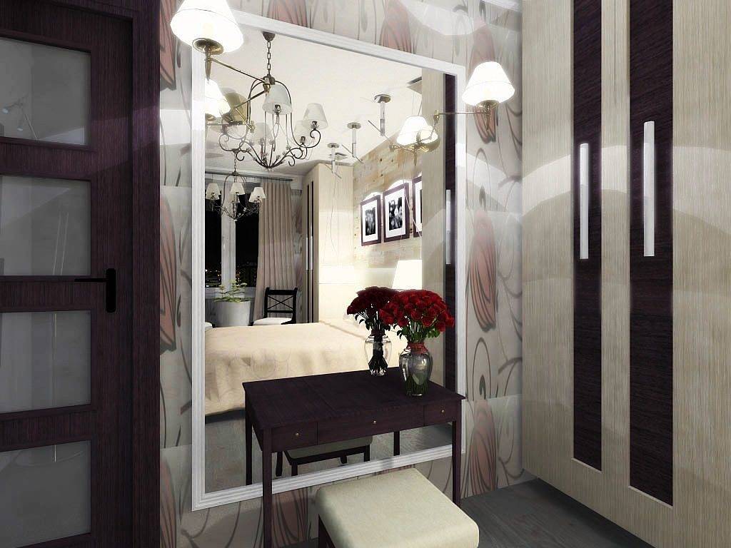 Такой необыкновенный элемент декора, как зеркальная стена, зрительно может увеличить площадь маленькой комнаты. Логичным решением будет установка большого цельного зеркала или зеркальной плитки на стену, нежели установка шкафа с зеркальными дверями.