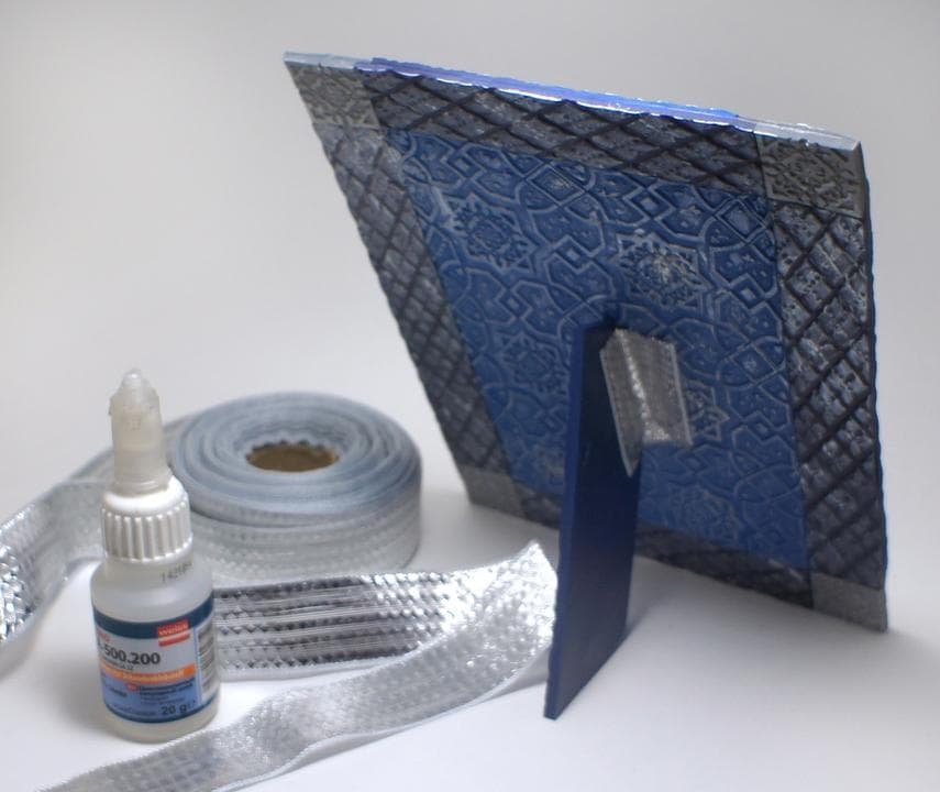 В процессе создания рамы, чтобы не запачкать зеркальную поверхность, заклейте ее малярным скотчем.