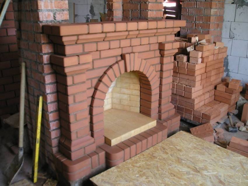 Современные камины могут отличаться по материалу сооружения, в качестве которого чаще всего выступает огнеупорный кирпич.