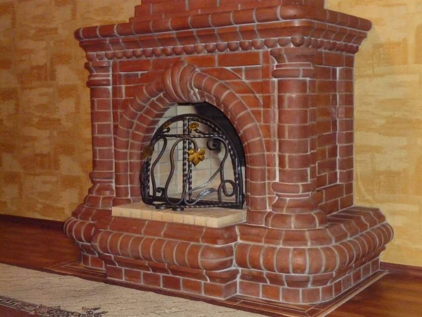 - поверхность конструкции грунтуется, выполняется облицовка термостойкой плиткой – керамической, каменной, из искусственного камня;