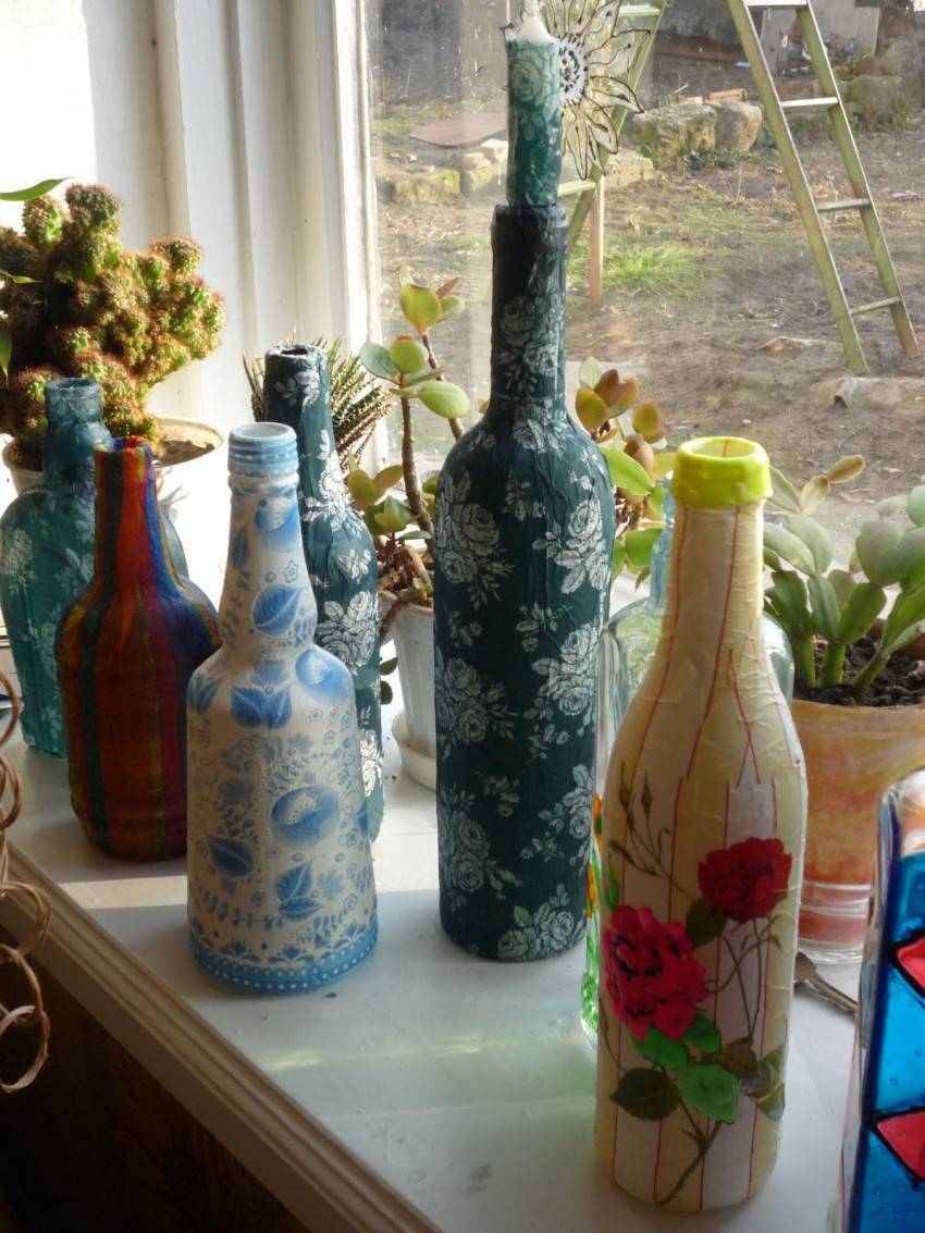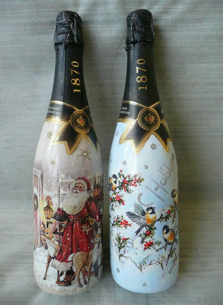 Когда люди стали увлекаться декупажем в России, то первым предметом, который стали декорировать, была бутылка. Выбирали необычную форму из-под вина или шампанского.