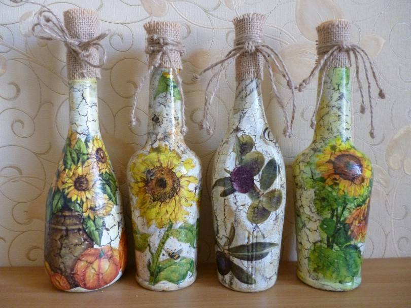 Когда люди стали увлекаться декупажем в России, то первым предметом, который стали декорировать, была бутылка. Выбирали необычную форму из-под вина или шампанского.