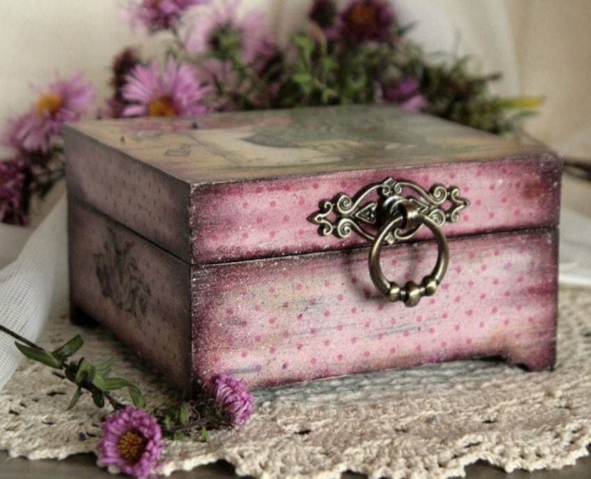 Правильно выбрав рисунок и технику декорирования, можно придать изделию романтичный, классический, современный образ. В качестве декоративного материала применяются вырезки из бумаги, обоев, ткани.
