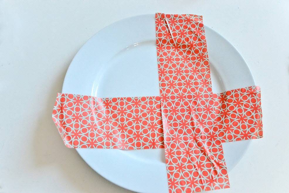 Необходимые материалы: белые тарелки, скотч, специальные фломастеры, вода, ватные палочки и духовка. Ватные палочки со стаканом воды понадобятся для того, чтобы корректировать узор.