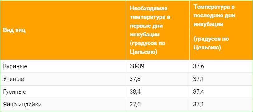 До закладки яиц испытайте температурный режим инкубатора в течение суток, чтобы убедиться в возможности менять температуру на каждом этапе инкубации. Так, для цыплят в первые два дня нужна температура 38 ºС, затем до 10-го дня 37,8 ºС, с 11 по 16 день — 37,5 ºС, с 17 по 19 день — 37,2 ºС, с 20 по 21 день — 37 ºС.