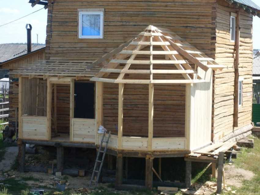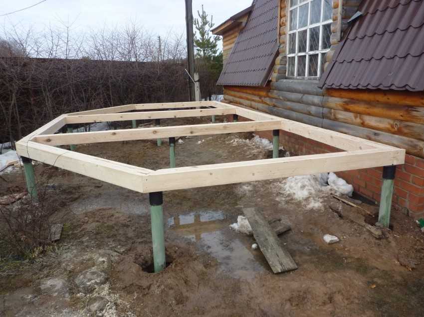 Для строительства легких построек: летней кухни, веранды, террасы, подойдет каркасная конструкция.