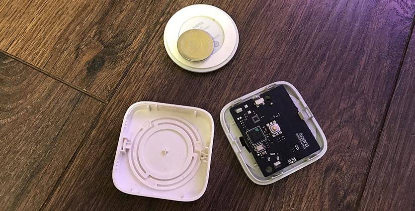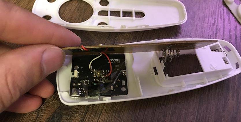 8. Остается надежно приклеить батарейку к кнопке Aqara, чтобы она не отвалилась при использовании. Используйте изоленту или скотч.