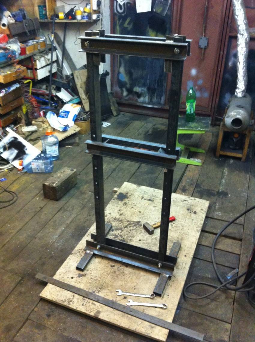 Одним из основных действий, связанных с изготовлением гидравлического пресса своими руками является подготовка рамы. Она имеет название «станина» и именно внутри нее будет находиться будущий пресс. Ее прочность должна иметь некоторый запас, так как давление внутри станины осуществляется в обе стороны (и вверх, и вниз), поэтому существует вероятность того, что раму разорвет.