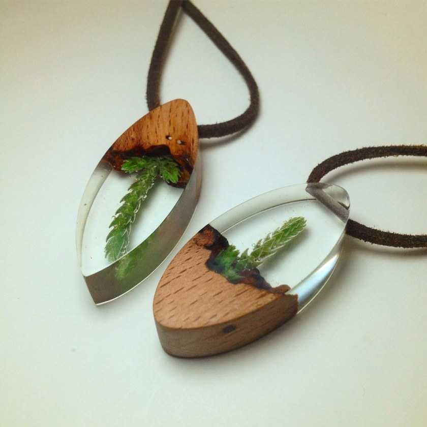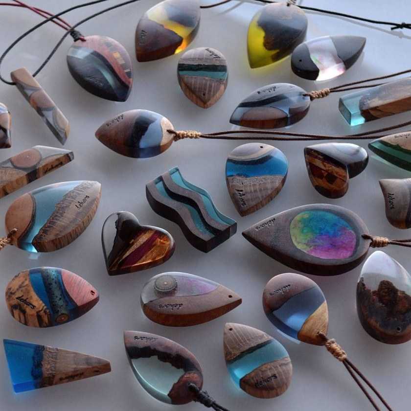Создавать украшения из дерева и эпоксидки – увлечение, интерес к которому постоянно растет. Применив описанную технику, можно сделать не только кулон, но и полный гарнитур для оригинального образа. Не лишним будет ознакомиться с работами признанных во всем мире мастеров, чьи работы действительно вдохновляют.