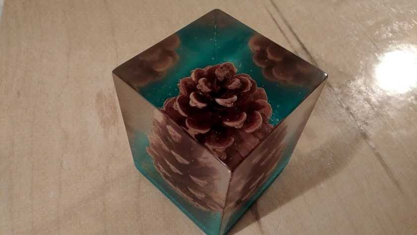Если срезы по задумке автора полностью погружены в смолу, работа завершена. Если же они остаются на поверхности, стоит обработать дерево дополнительно. Для этой цели используют растительные масла или воски. Такой ход позволит не только улучшить внешний вид украшения, но и защитить его от воздействия влаги.