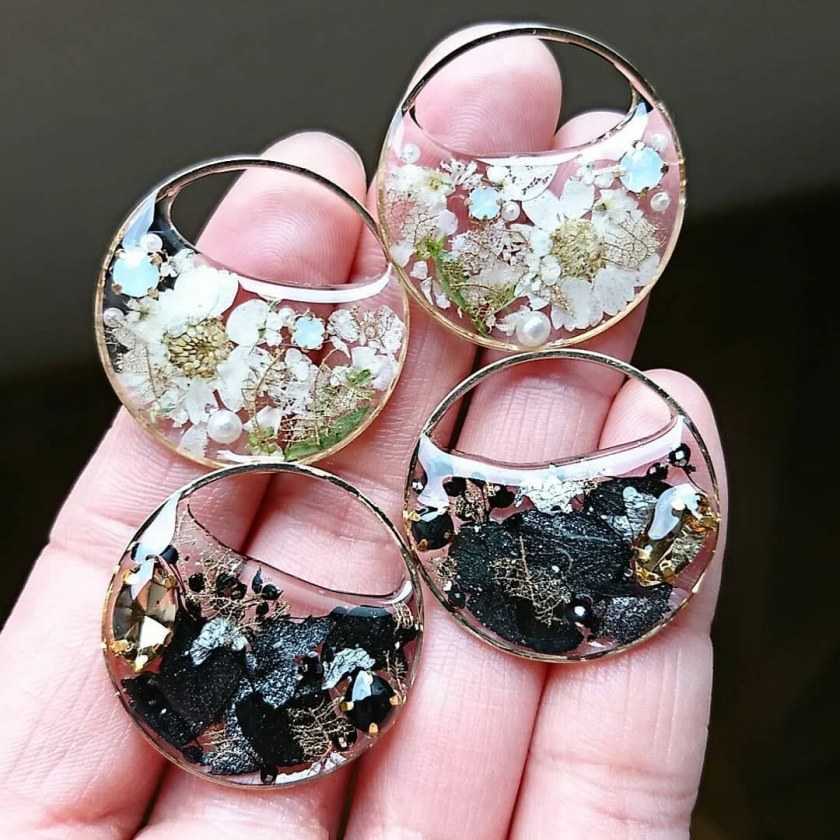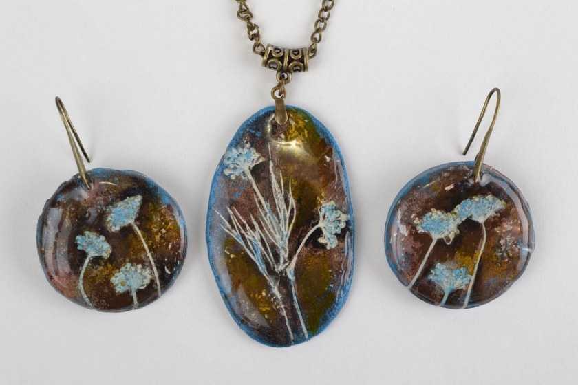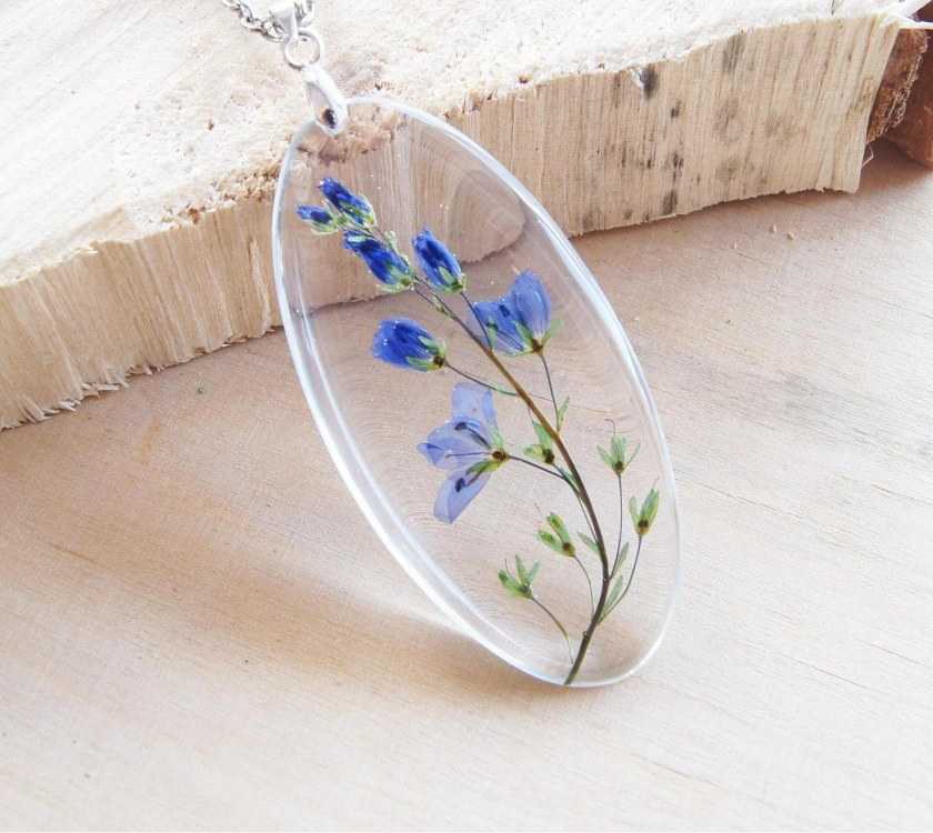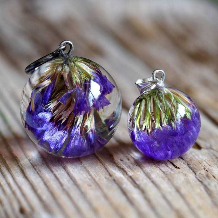 Эффектно смотрятся украшения из эпоксидной смолы и дерева с сухоцветом. Создать серьги или кулон можно следующим образом: