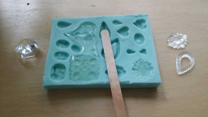 Когда смола станет полностью твердой, пора доставать заготовку из молда или разбирать опалубку. На силиконовую форму достаточно просто надавить, чтобы изделие выпало из его. Опалубку можно аккуратно разбить с помощью тонкой отвертки и молоточка, если это не получилось сделать рукой. Если же молд был сделан из пластилина, его достаточно просто отодрать вместе с полиэтиленом.
