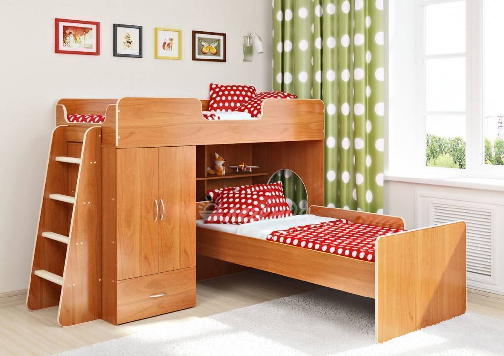 Кровать-чердак с двумя спальными местами решит проблему размещения двоих детей в одной комнате