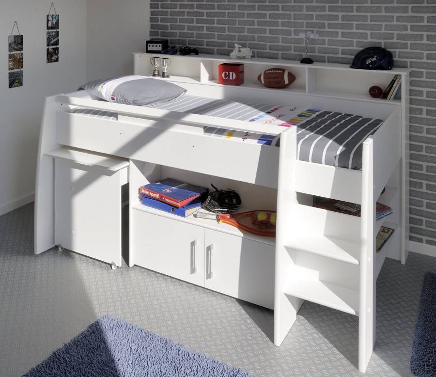 Детская кровать чердак может быть средней высоты — спальное место находится на расстоянии метра от пола (или около того)