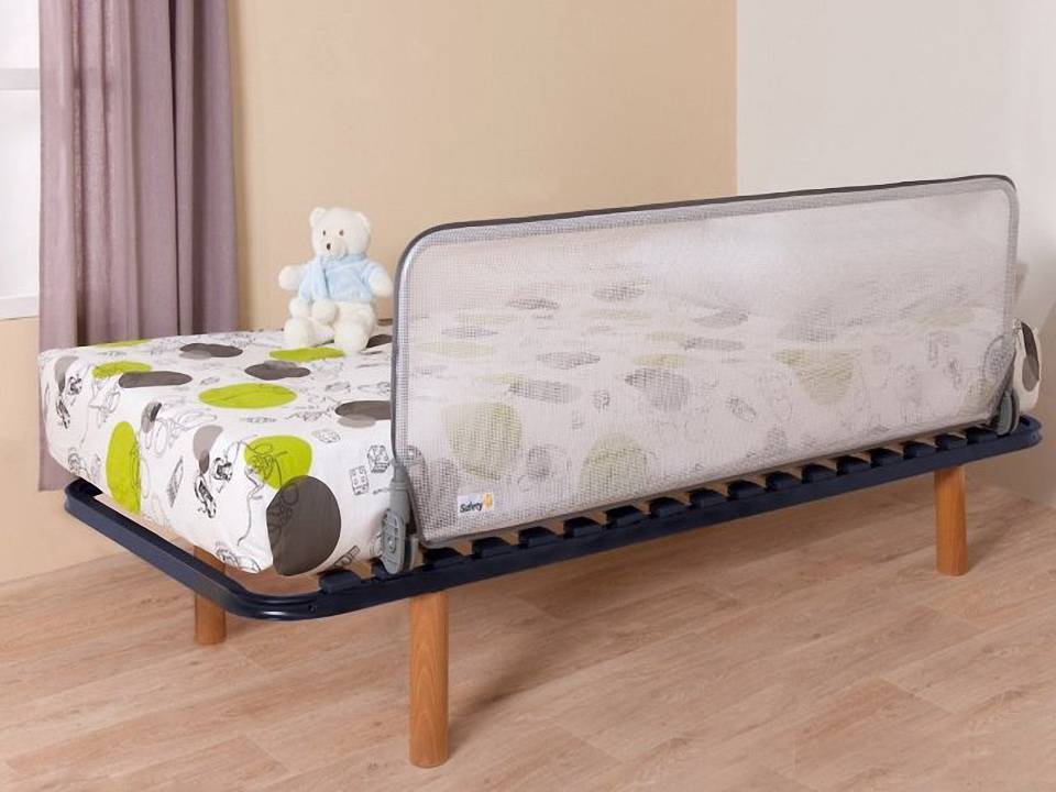 Ограничитель для кровати из сеткообразного материала используют для детских кроваток, если ребенок уже не слишком маленький и спит отдельно от родителей. Сетка должна быть очень прочной и выдерживать ребенка, если он упрется всем своим весом в нее во время сна. Для надежного крепления такой защиты следует подготовить каркас для сетки и надежно закрепить его. Каркас выполняют из деревянных реек или металлических ограничителей. Сами же ограничители смягчают, одевая на них тканевые чехлы или поролоновые подушки.