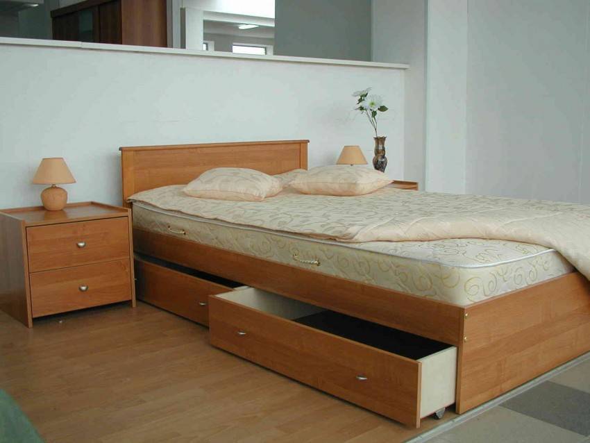 Кровать с выдвижными ящиками можно использовать в качестве хранилища для вещей.