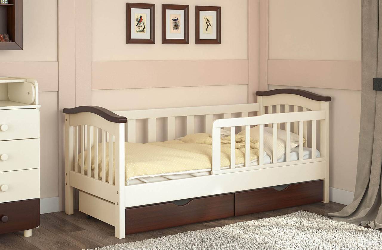 Односпальная кровать с прикрепленным изголовьем и бортиками-ограничителями для матраса