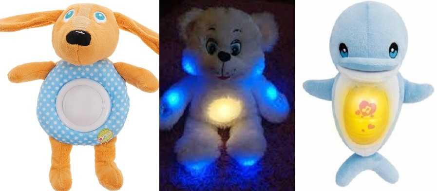 В младшем детском возрасте ребенок может бояться темноты. Чтобы он чувствовал себя спокойно требуется детский ночник. Один из самых привлекательных для детей вариантов — светящаяся игрушка. Это может быть какой-то мультяшный герой, плюшевый цветок, луна, солнышко…что-то, что нравится вашему ребенку. В одну из частей игрушки вшиты светодиоды, которые издают совсем неяркий свет. Но его достаточно для того чтобы проснувшийся ребенок не боялся.