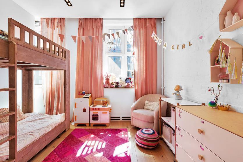Для девочек помещение можно стилизовать в комнату принцессы, добавив много розового цвета. Хотя, далеко не всем это нравится. Все зависит от девочки, ее интересов.