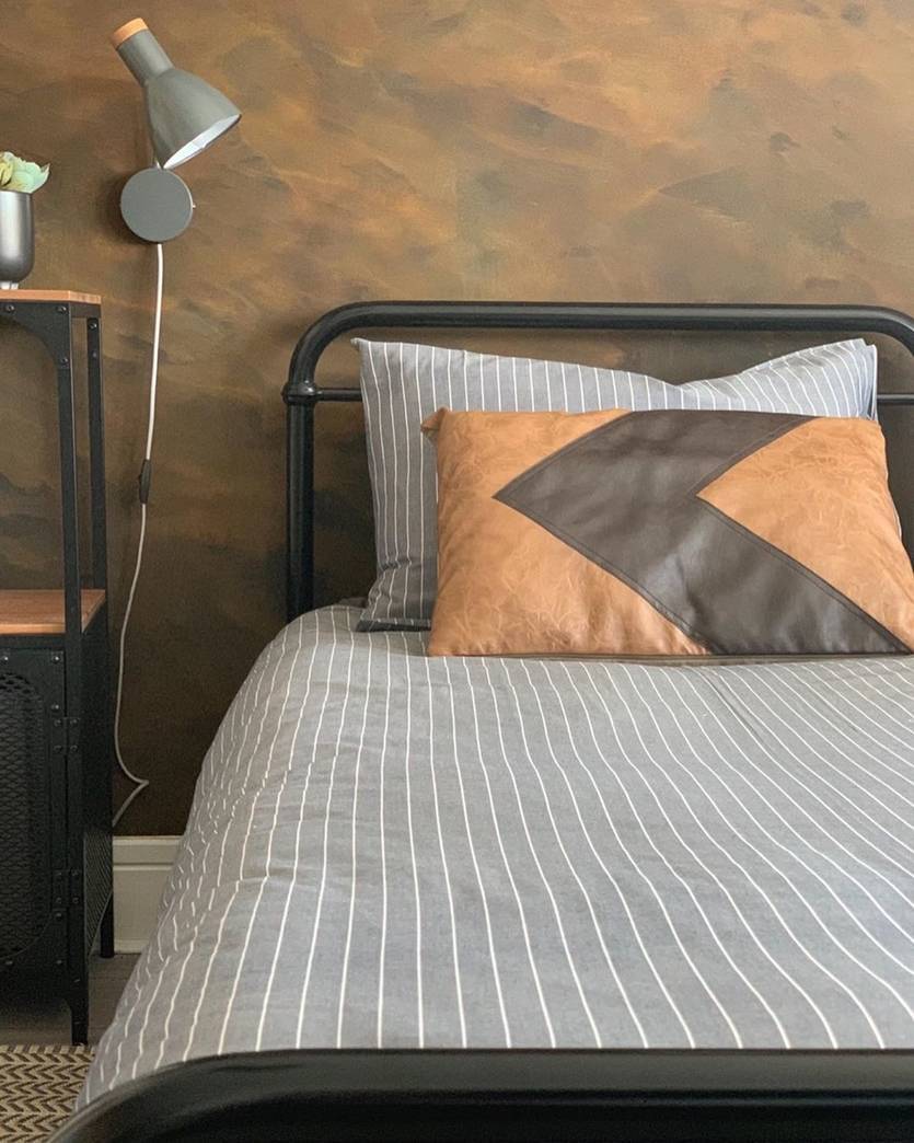 Обращаясь к индустриальной стилистике в дизайне не слишком большого помещения, предусмотрите достаточное освещение: затемненные углы могут сделать комнату подростка еще более маленькой, что точно не пойдет ей на пользу. Выигрышный ход — распределять источники света согласно функциональным зонам, например: