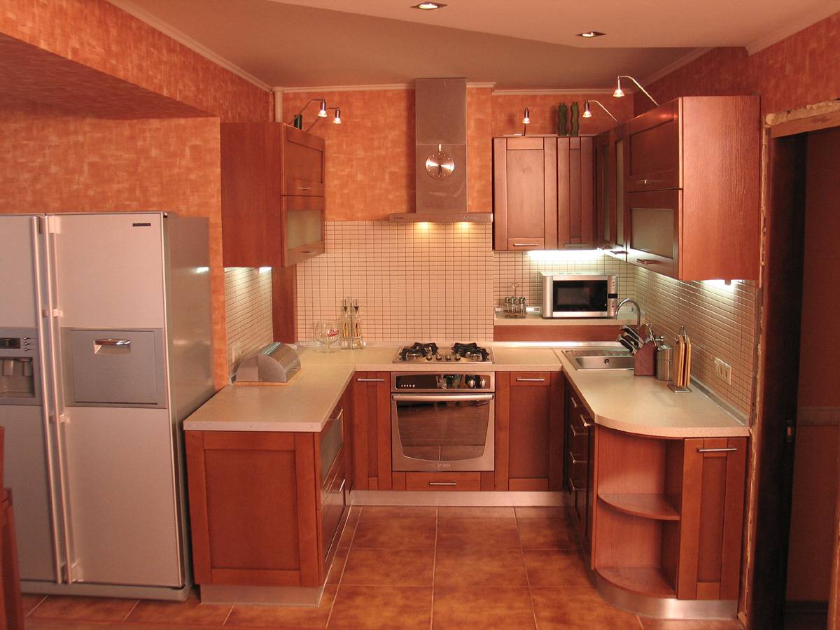 Существует несколько способов расположения основного набора мебели в маленькой кухне: