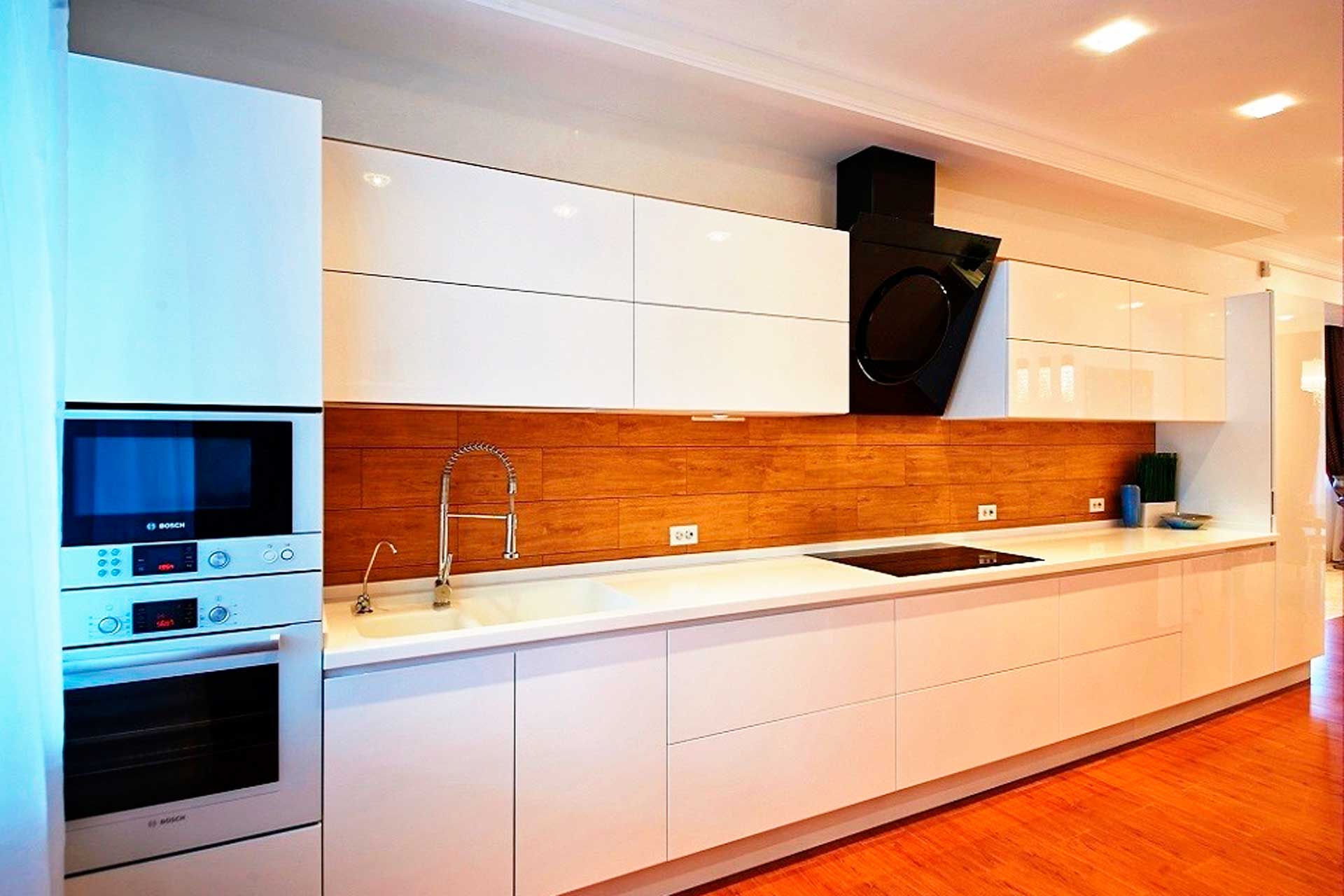 Достоинства двухлинейной кухни: она делает помещение более вместительным и функциональным. Также появляется возможность установить всю необходимую бытовую технику.