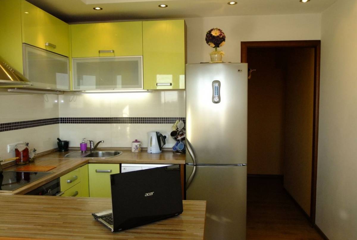 Приятный салатовый цвет в интерьере маленькой кухниИсточник 2gis.ru