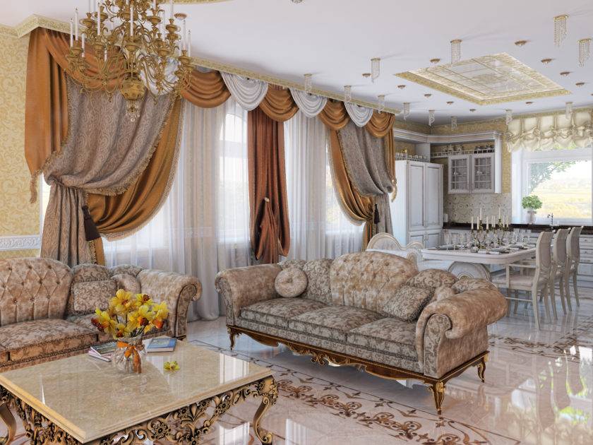 Шторы в гостиную в классическом стиле: 5 золотых правил выбора оформления окна