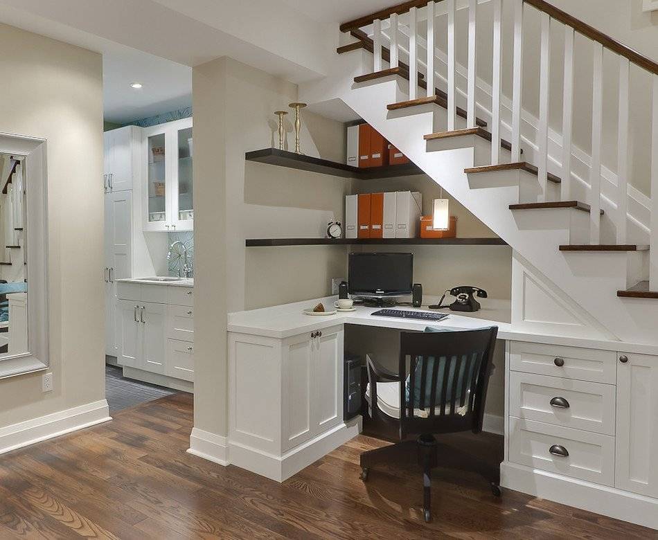 Кроме этих приемов, можно еще преобразовать пространство, например, создать нишу в стене. Такое решение будет максимально комфортным для работника. Возможно помещение рабочей зоны на небольшой подиум, это качественно выделит зону для работы среди остальных предметов, но будет не слишком удобным и практичным.