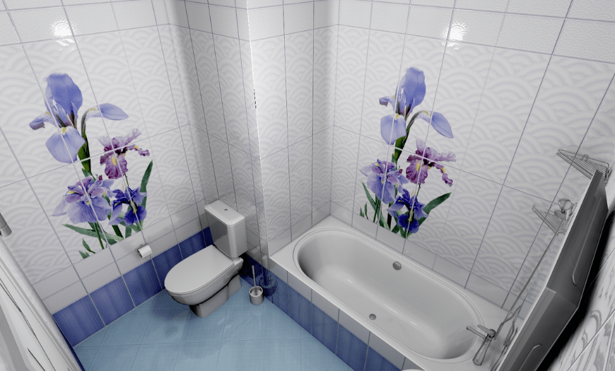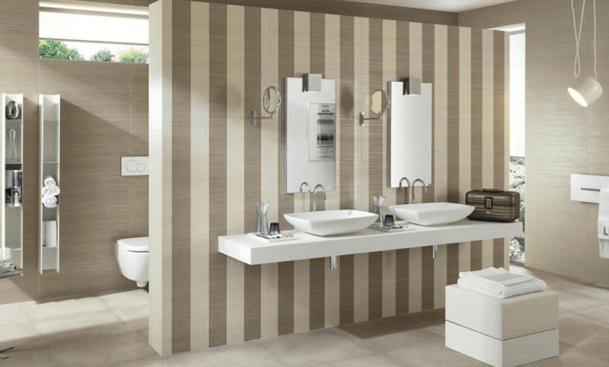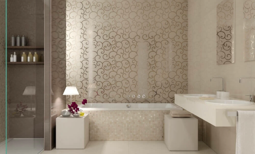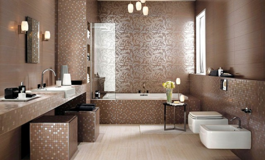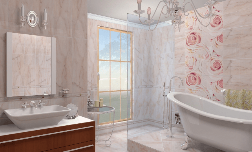 Уместным также будет использование нескольких зеркал. Допускается комбинирование 2-3 видов плитки для отделки поверхностей. Она может отличаться рисунком, цветом и даже формой.