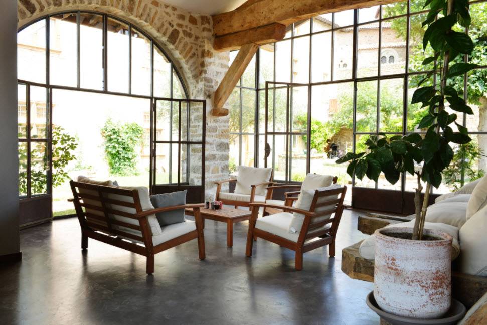 Дизайн веранды может включать в себя элементы с подчеркнутой неидеальностью поверхности
