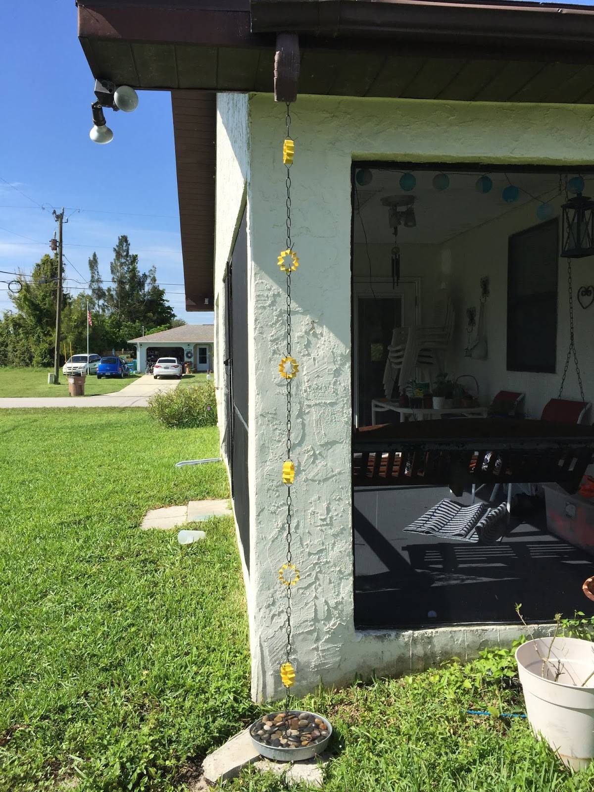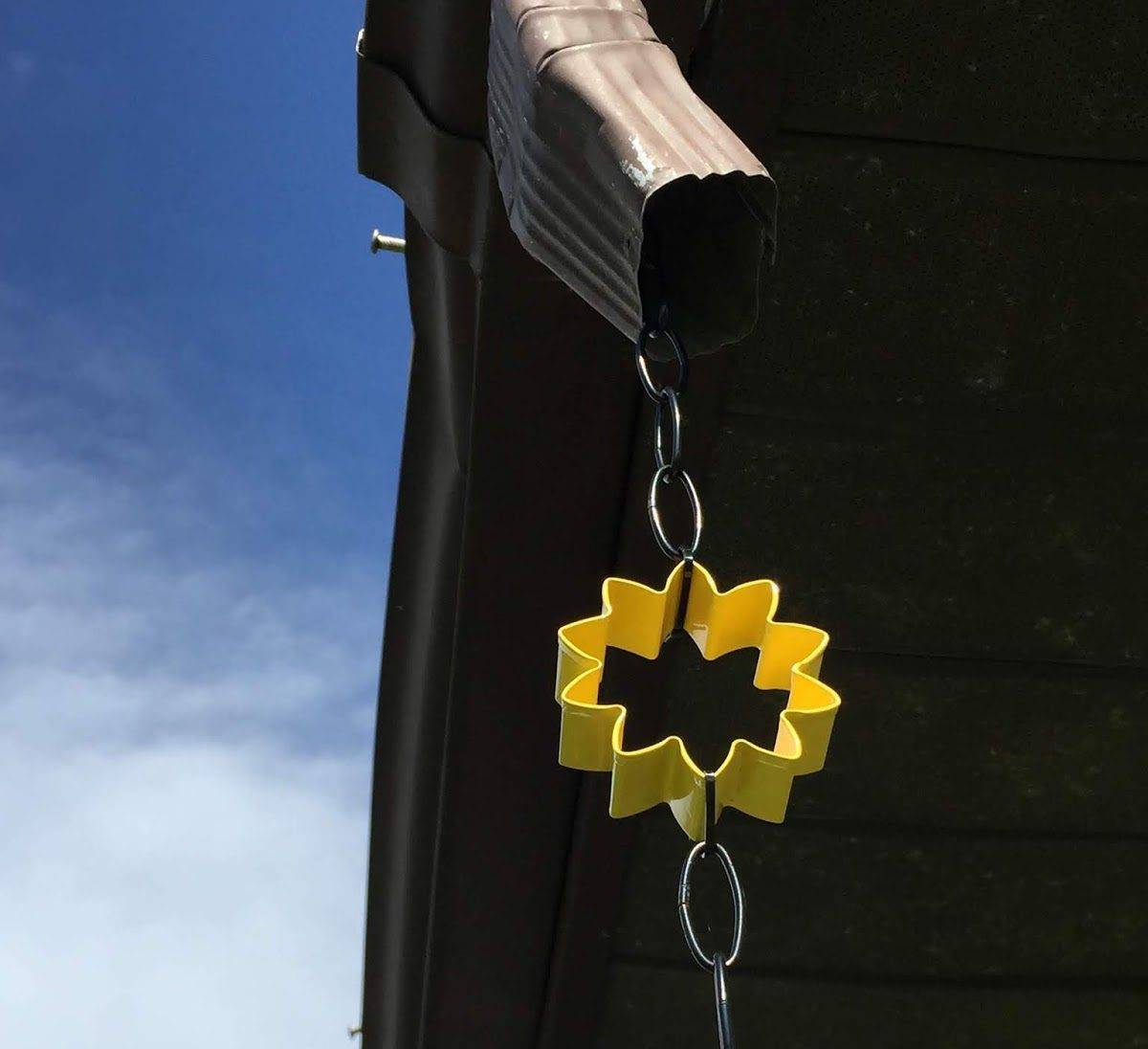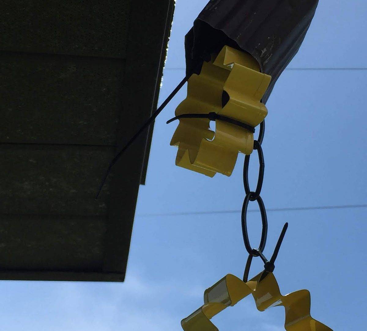 Водосточные желоба на крыше моего дома проходят не по всему периметру, кое-где я даже не смонтированы водосточные трубы, поэтому я решила повесить дождевые цепи.