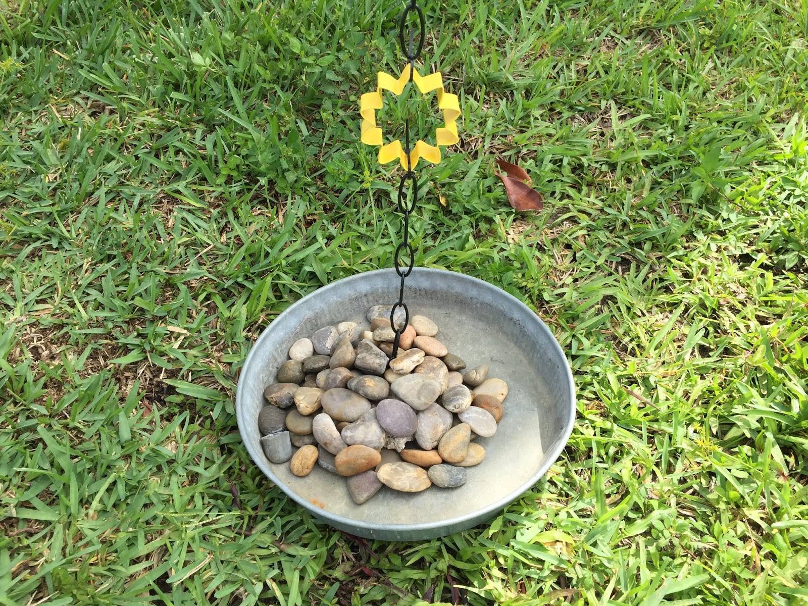 Вниз поставила чашку с камнями, присыпала нижний конец цепи, чтобы она не сильно качалась на ветру.