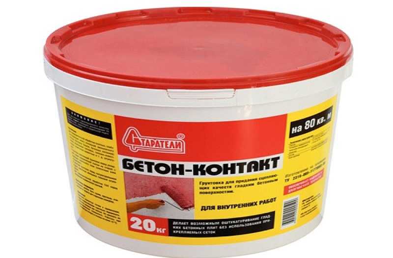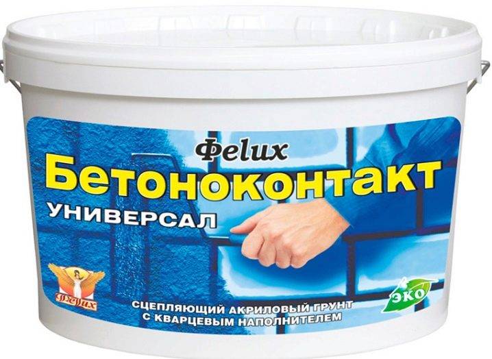 - «Бетоноконтакт» — клеящий состав, превращающий гладкую поверхность в шероховатую, чтобы повысить сцепляемость материалов.