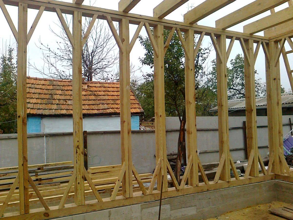 Полученная конструкция все еще не обладает достаточной жесткостью, для устранения этого недостатка к вертикальным брусьям крепятся диагональные связи – раскосы. Их сечение может отличаться в меньшую сторону от сечения самих стоек.