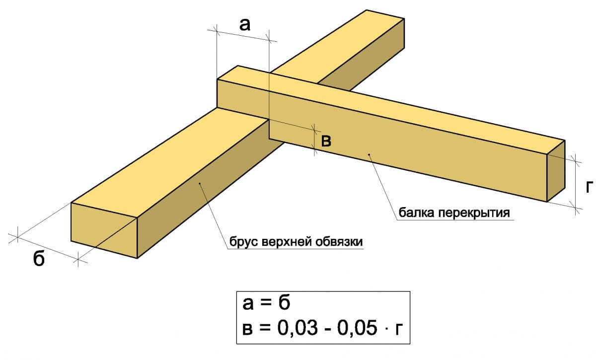 Завершающим этапом создания каркаса дома из бруса можно считать установку потолочных балок. Балки могут крепиться к верхней обвязке несколькими способами: с помощью специальных кронштейнов, врубкой или с помощью уголков.