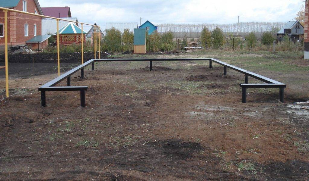 Очень важно соблюдать единый уровень стоек фундамента, возвышающихся над грунтом. При обрезке стараются удалить ту часть ствола, в которой была проушина для завинчивания элементов в землю