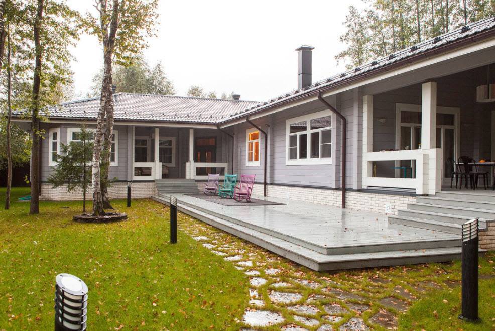 Просторный одноэтажный дом можно построить с разным стилевым направлением, учитывая индивидуальные требования и предпочтения клиента. Красивый одноэтажный дом в американском стиле будет демонстрировать богатство дома и финансовую состоятельность его хозяина. Американский стиль сочетает в себе простые формы и большие комнаты, линии его строгие и симметрические. Вход в дом оснащается широкой лестницей, а экстерьер подтверждает чувство вкуса и богатство семьи в каждой детали.